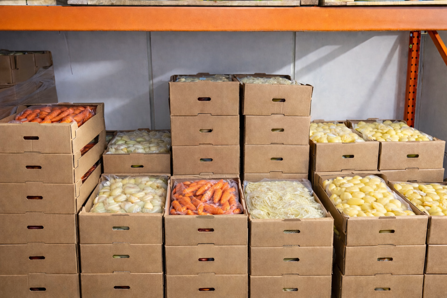 Pe lângă ceapă curățată, cartofi curățați pentru fiert și cartofi pai în coajă pentru prăjit, portofoliul nostru Ready to Cook cuprinde și morcovi curățați și vidați, amestecuri de legume pentru supe și ciorbe, precum și alte produse destinate utilizării eficiente în bucătăriile HoReCa, adaptate fluxurilor profesionale de lucru.